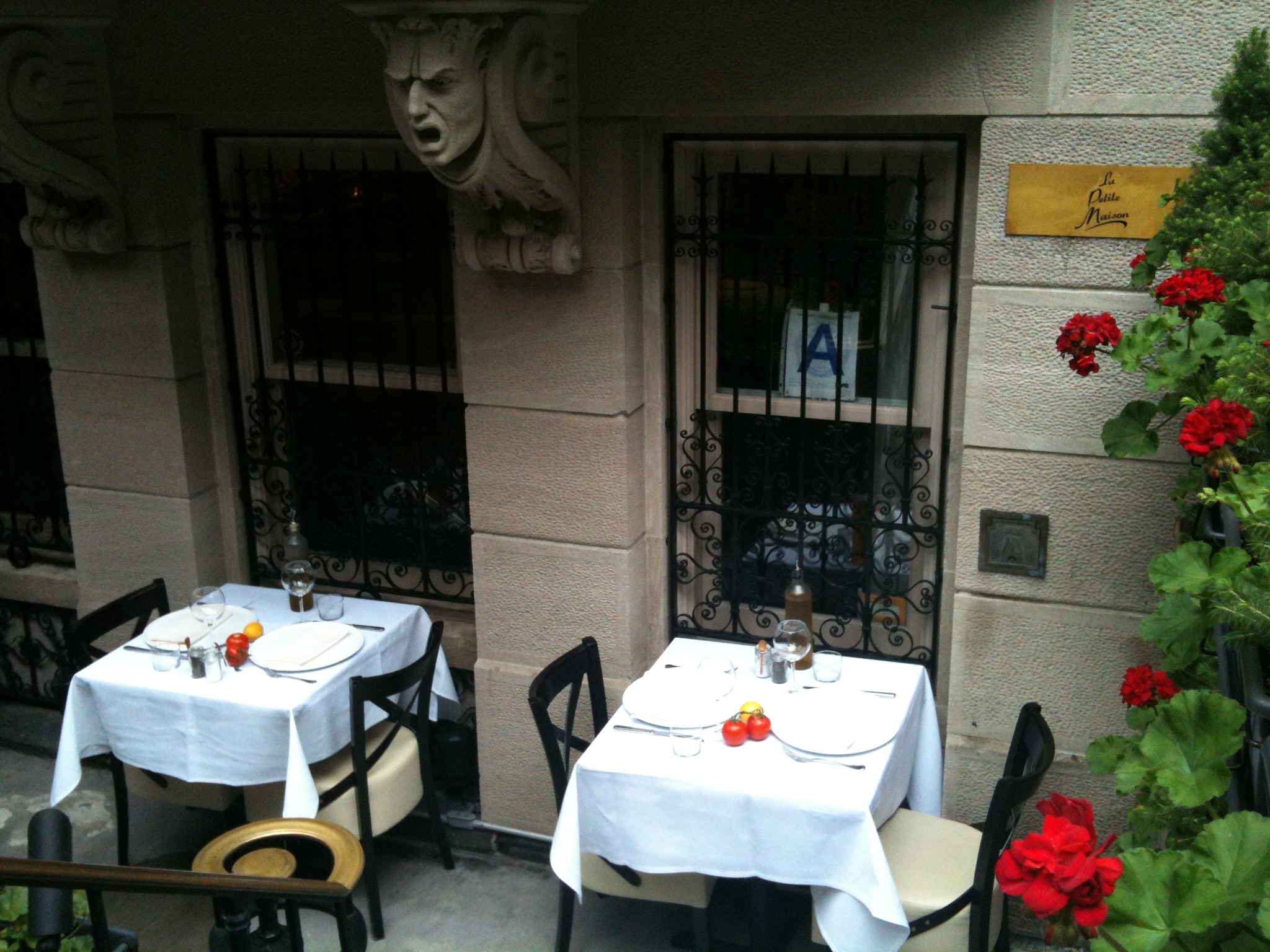 Even though there is no physical resemblance between the Rockefeller kitchen that must have occupied this below-street-level space a hundred years ago and the sleek bar and festively set tables of La Petite Maison, I was content. The perfect fresh tomatoes and lemons that decorate the little tables were unusual, as was the bread served in brown paper bags. I basked in the historical atmosphere of my hometown, which constantly renews itself.
