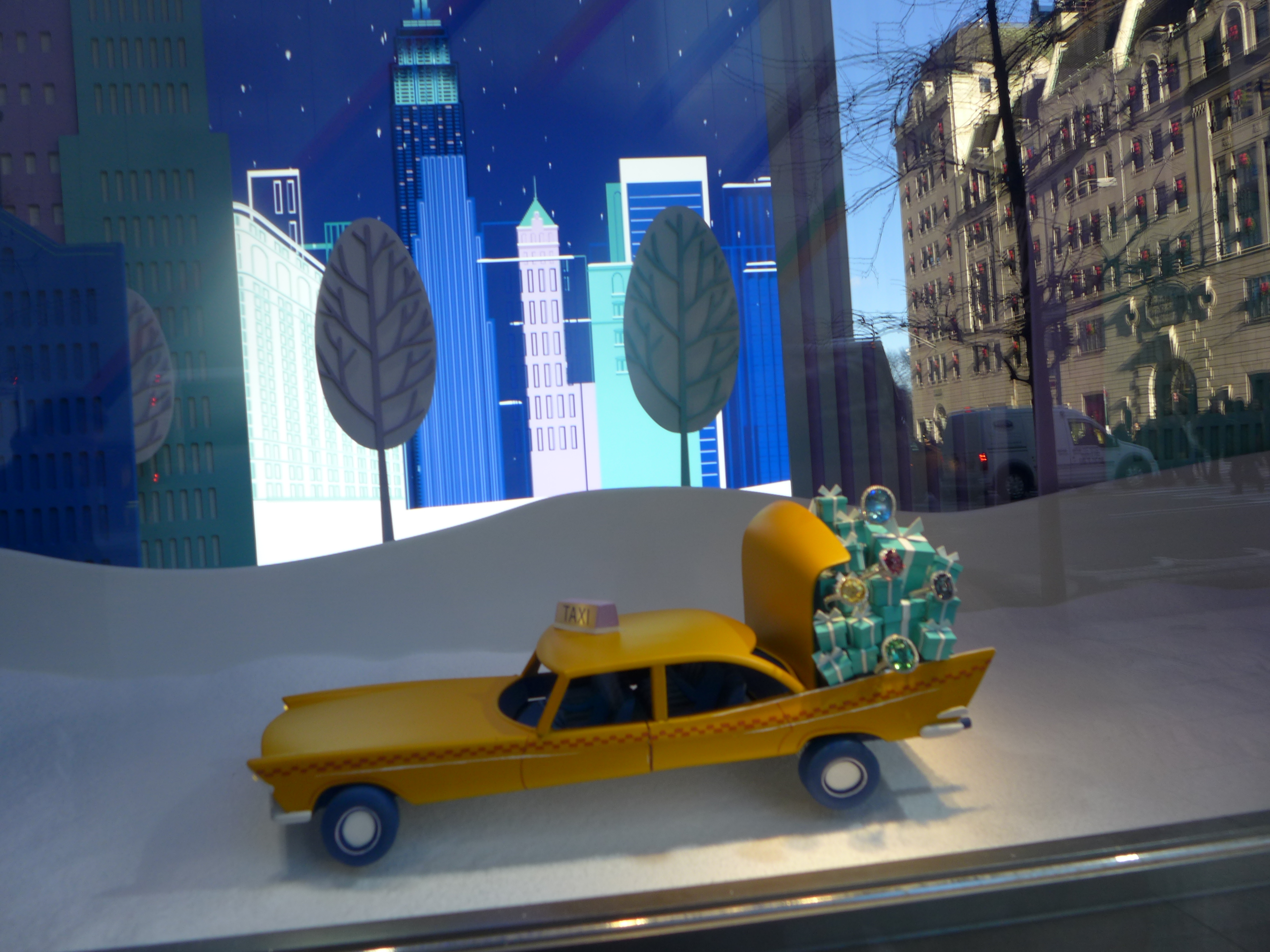 And I do enjoy Christmas. This year, like most, I went downtown to admire the Christmas tree at Rockefeller Center, which I own—a little—since I wrote a book (America’s Medicis: The Rockefellers and Their Astonishing Cultural Legacy) that recalls that the tradition dates back to the construction workers who built the Center from 1929-1939 and decorated a smaller tree in 1931 at the height of the Great Depression. I also walk along Fifth Avenue and immerse myself in the fantastic windows the luxury stores mount for our delight. This year, Saks Fifth Avenue illustrates five fairy-tales—Rumpelstiltskin, Rapunzel, Cinderella, Snow White and Sleeping Beauty—in luxurious Art Deco style. The main characters, glamorously dressed in sequins and silk, are silhouetted against iconic New York buildings, images of a city in which I do feel utterly at home. Tiffany too celebrates my city with miniature cartoon-like characters and objects, all shopping for magnificent jewels. I use my new camera to share my imperfect pictures with you, my readers, and wish you a happy 2015.