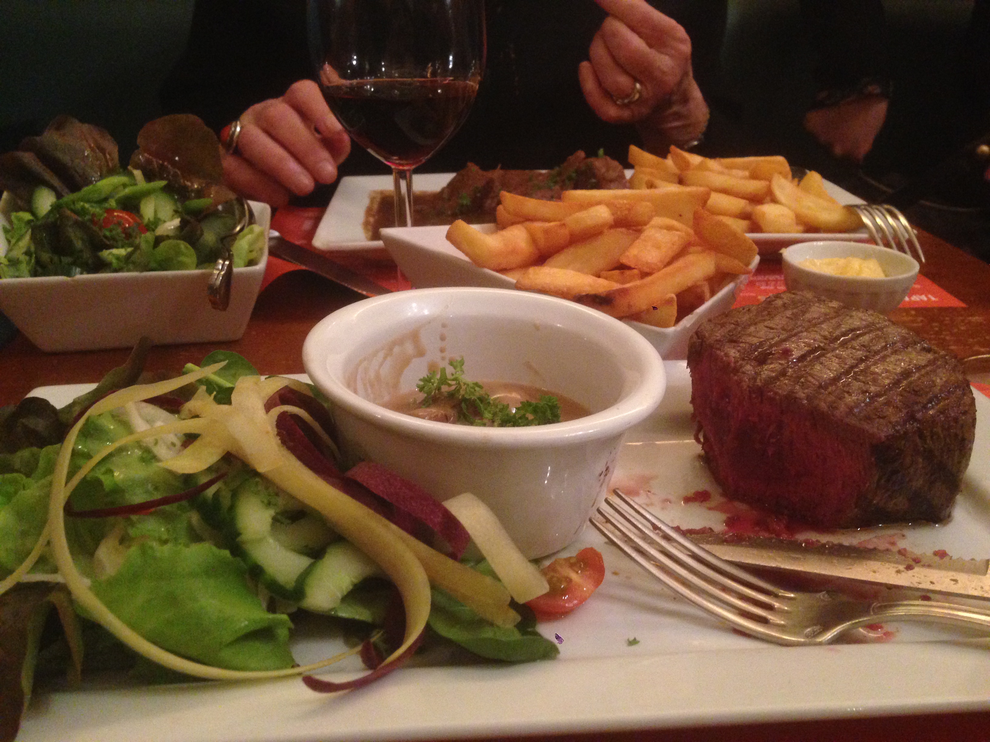 The café itself unleashed Proustian memories. I might even have eaten here, 70 years earlier, during one of the eatery’s previous incarnations. In 1945 my cousin Jerry, a member of the victorious U.S. army, took me to the Grand Place for a luxurious black-market feast of steak and French fries. To my great embarrassment Jerry argued with the proprietor about his exorbitant bill, which they settled after a colorful argument. The owner apparently was not perturbed by the dispute since he gave me a huge wink as we left, suggesting, I suppose, that the next time I picked up an American soldier I should again bring him to his establishment.